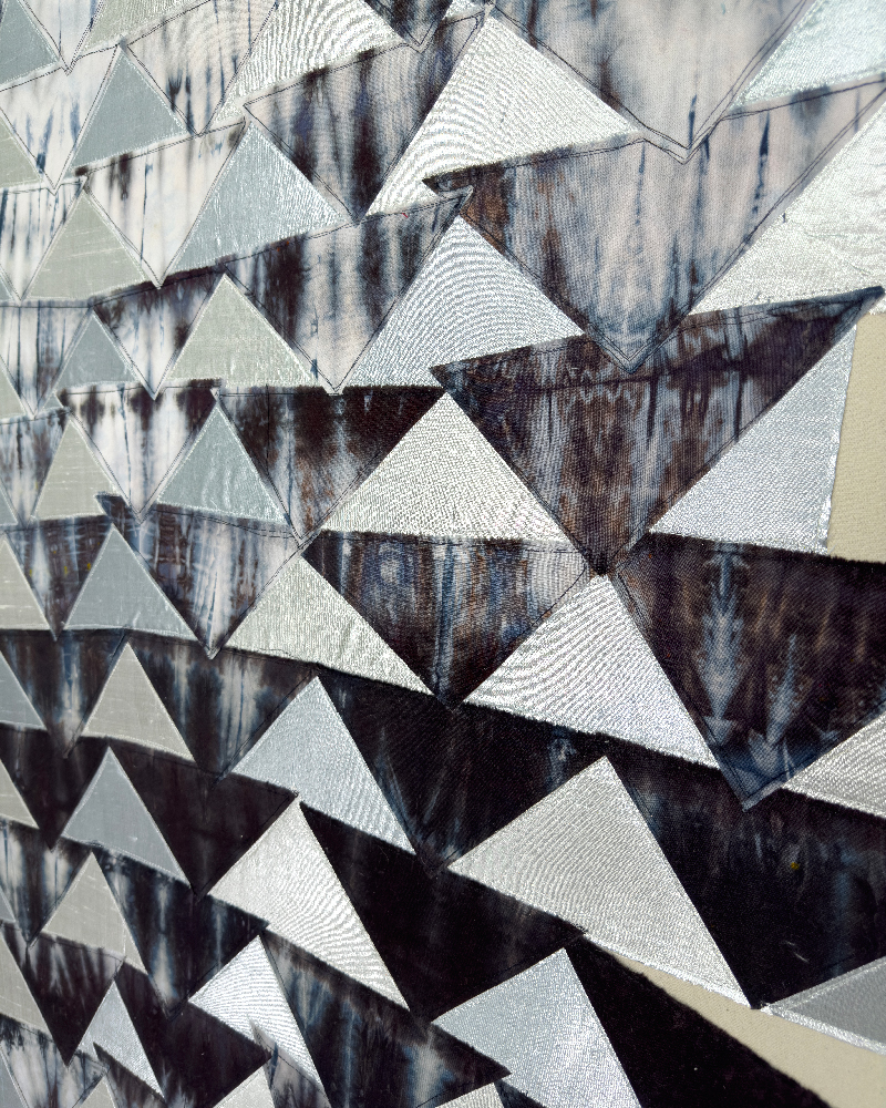 Curious Geometries features large-scale, sewn and quilted artworks by Miami-based artist Regina Durante Jestrow. The exhibition invites viewers to pause and enter a world where pattern, material, and memory collide. This series of textile-based works—including stretched compositions and free-form art quilts—explores the irregular, organic, and often playful relationships between geometry and gesture. Inspired by the layered ecologies and the multicultural textures of Miami, the works weave together improvisational dyeing and piecing techniques that nod to the history of quilting while disrupting its expectations.